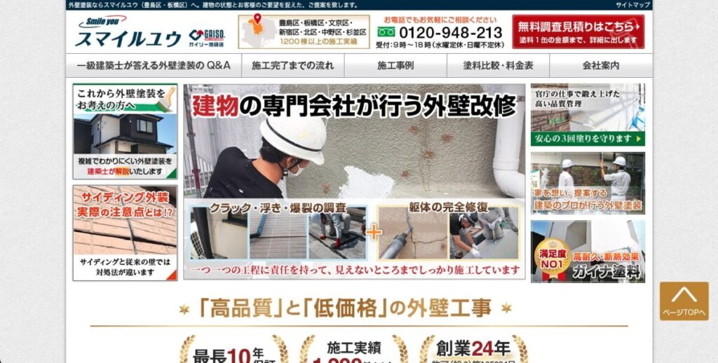 エリア豊島区・板橋区・文京区・新宿区・北区 住所 〒170-0013 東京都豊島区東池袋5丁目7番3号 アゼリア東池袋1階 電話番号 0120-948-213 HP https://www.smileyou-gaiheki.com/ おすすめポイント